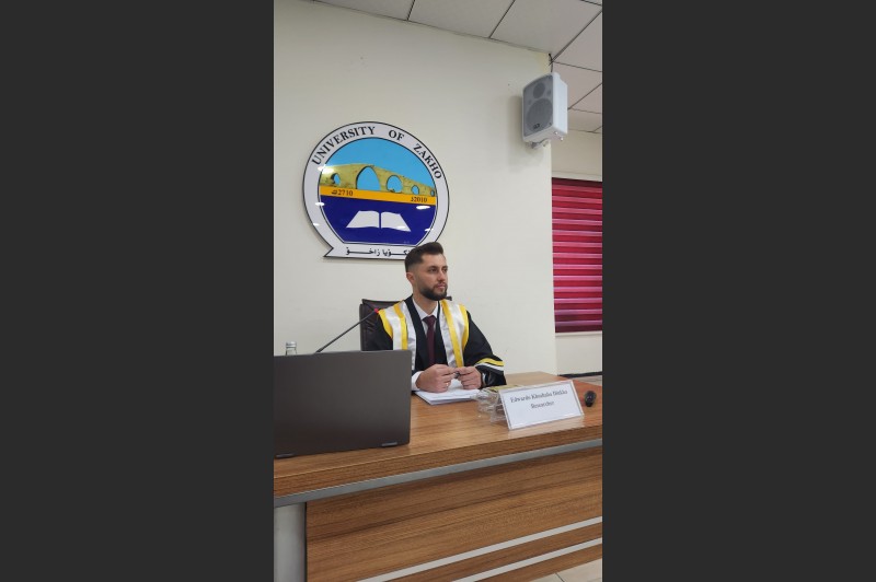 The Master’s viva of the postgraduate student Edwardo Khoshaba Dinkha was successfully conducted before an examining committee on October 12, 2025. The event was attended by several professors, faculty members, and instructors from the Department of English Language.