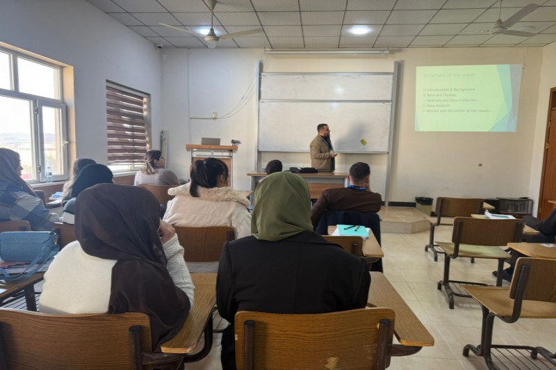 On Sunday, November 30, 2025, a seminar entitled “Exploring the Functions of Implicatures in Northern Kurmanji” was presented by Mr. Nechirvan Hassan Jawzal, Lecturer at the English Language Department at the College of Humanities.
