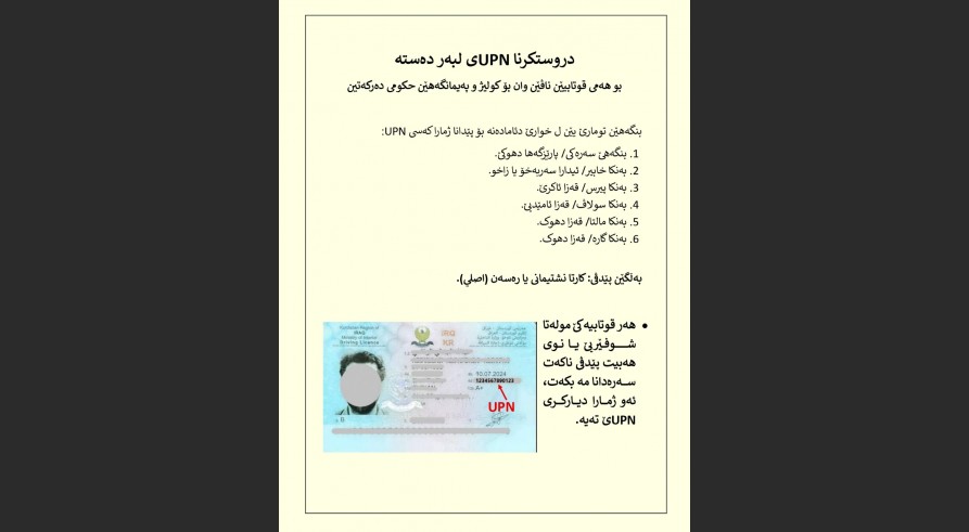 ئاگەهداریەک ژ زانکۆیا زاخۆ سەبارەت دروستکرنا هژمارا بەنکی (UPN)