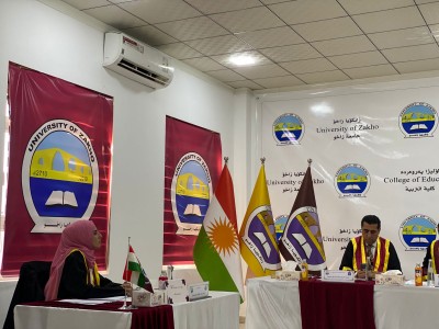 ل رۆژا پێنچ شەمبێ رێککەفتی 06/11/2025 دەمژمێر (10:00) سپێدێ گەنگەشا ناما ماستەرێ یا قوتابی (ژيان نظير رمضان) ل پشکا( پەروەردا جەستەیی و زانستێن وەرزشی ) يا لژير ناڤو نيشاني ( أثر نموذج ايزنكرفت الاستقصائي في التحصيل المعرفي وإكتساب بعض المهارات الهجومية بكرة السلة للطلاب) ل هۆلا (کولیژا پەروەردە (B6)) ل ئاڤاهیێ کۆلیژا کارگێری و ئابوری زانکۆیا زاخۆ هاتە ئەنجامدان.
