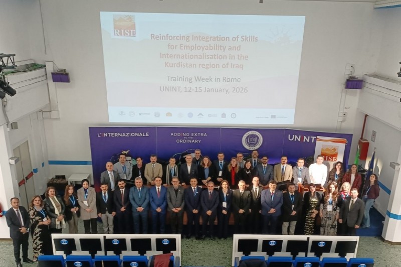 From 12–15 January 2026, the University of Zakho participated in the RISE Training Week in Rome, Italy, organised within the framework of Work Package 3 (WP3) of the Erasmus+ RISE Project and hosted by the International University of Rome (UNINT). This capacity-building activity followed an earlier training session held in Murcia, Spain, and brought together 35 representatives from partner institutions, including seven universities from the Kurdistan Region of Iraq.