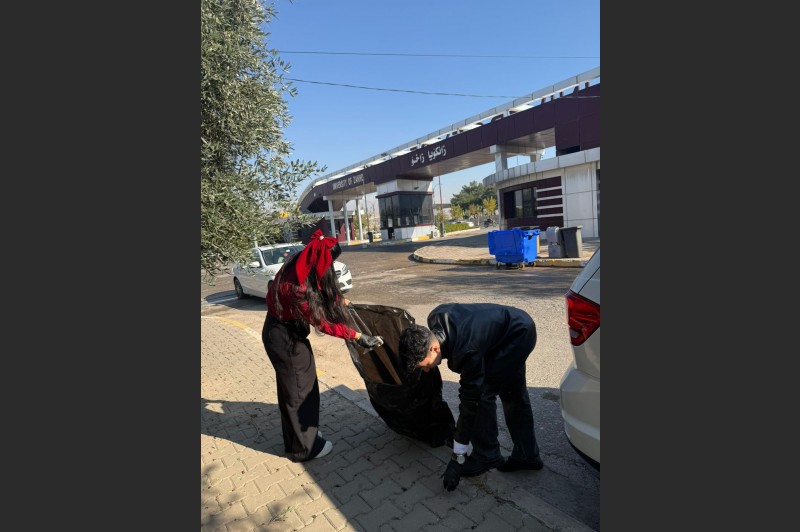On Tuesday, 2 December 2025, the Career Development Center at the University of Zakho, in coordination with the Department of Environmental Science at the College of Science, organized a cleaning activity in which students of the Environmental Science Department participated by cleaning various areas of the university campus.