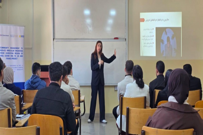 On December 2, 2025, the College of Law at the University of Zakho, in cooperation with the Women’s Empowerment Organization (WEO) and the United Kingdom’s Foreign, Commonwealth and Development Office, organized a scientific workshop titled “Community Engagement to Reduce Irregular Migration from the Kurdistan Region of Iraq (CERIM) to UK and France” for students of the College of Law.