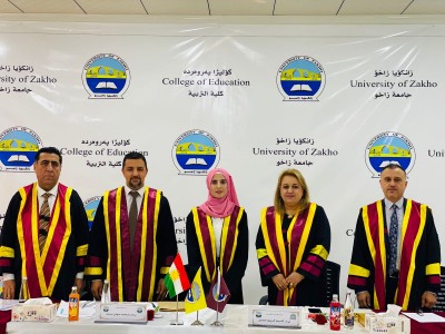 ل رۆژا پێنچ شەمبێ رێککەفتی 06/11/2025 دەمژمێر (10:00) سپێدێ گەنگەشا ناما ماستەرێ یا قوتابی (ژيان نظير رمضان) ل پشکا( پەروەردا جەستەیی و زانستێن وەرزشی ) يا لژير ناڤو نيشاني ( أثر نموذج ايزنكرفت الاستقصائي في التحصيل المعرفي وإكتساب بعض المهارات الهجومية بكرة السلة للطلاب) ل هۆلا (کولیژا پەروەردە (B6)) ل ئاڤاهیێ کۆلیژا کارگێری و ئابوری زانکۆیا زاخۆ هاتە ئەنجامدان.