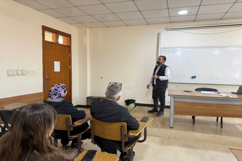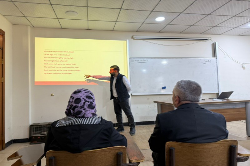 On Sunday, November 23, 2025, a seminar entitled “Ceasura and Heroic Couplet” was presented by Mr. Hasan Hussein Karo, Lecturer at the English Language Department at the College of Humanities.